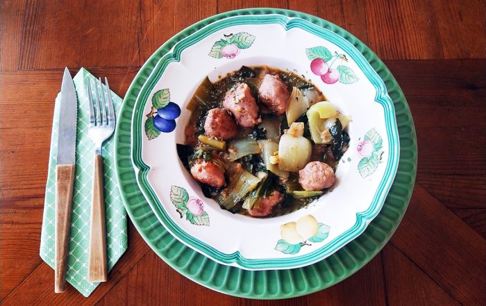 Guiso de col china con longaniza